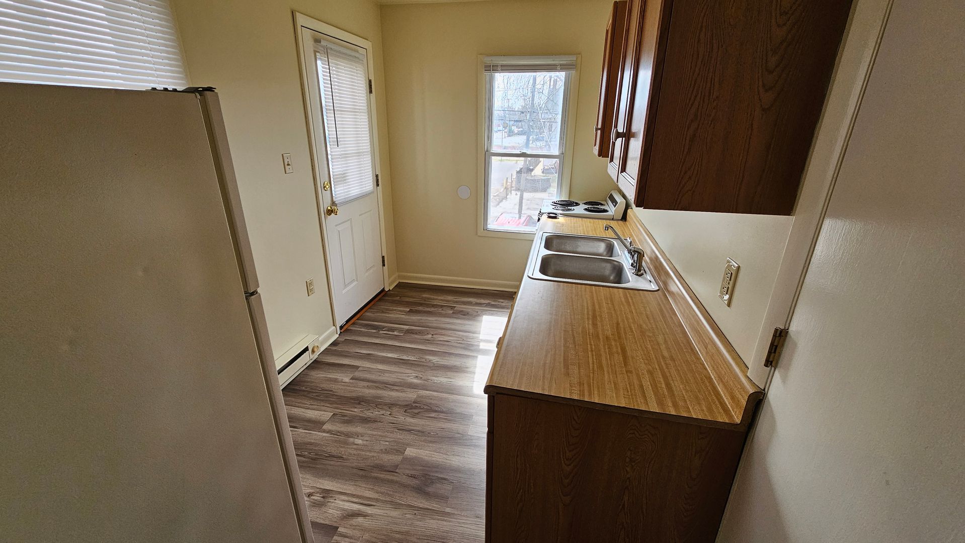 1 bedroom, bath 2nd Floor Apartment with Private Entrance! Small Deck Off Kitchen. Upgraded Cabinets and Countertops. Living Room and Bedroom, Newer Vinyl Plank. Assigned Off Street Parking in Rear of Building. Fenced Common Area in Rear, Locked Coin Operated Laundry On-Site! Water, Sewer and Trash Included in Rental Price! Efficient Gas Heat and Electric are Tenant Responsibility. Pets Case by Case. **Our website at www.burnsidemanagement.com has the most current available properties listed. If you are viewing this listing on another site, please note that this property may not be available.**